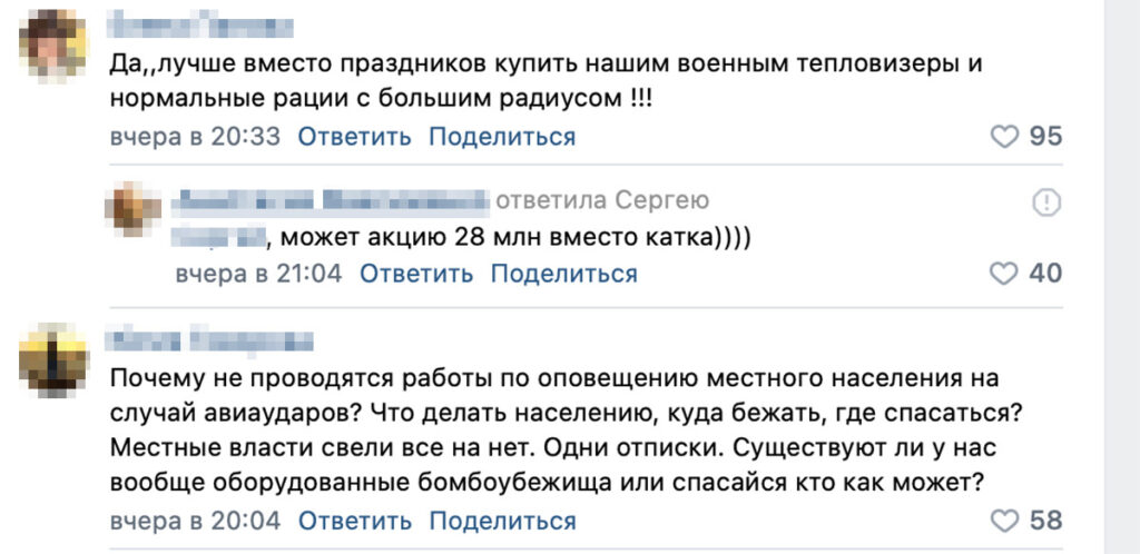 «Лучше унынье, но зато парни одеты, обуты, с квадрокоптерами, тепловизорами и прочими вещами, которые им очень необходимы», — пишет одна из жительниц области под постом губернатора.