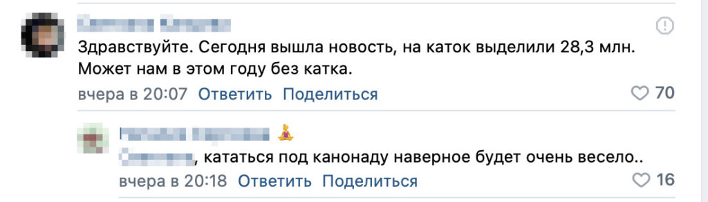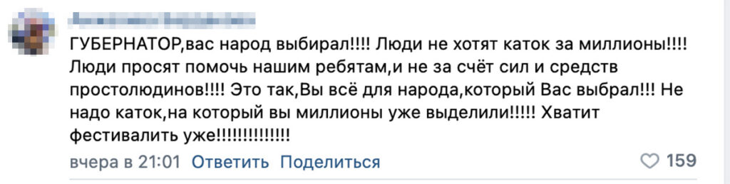 14 сентября белгородские журналисты сообщили, что регион планирует потратить более 28 миллионов рублей на монтаж ледового катка к Новому году. Новость вызвала возмущение жителей: они стали обращаться к губернатору Вячеславу Гладкову с требованием отменить все ближайшие праздники, отказаться от установки катка и отдать эти деньги Российской армии.