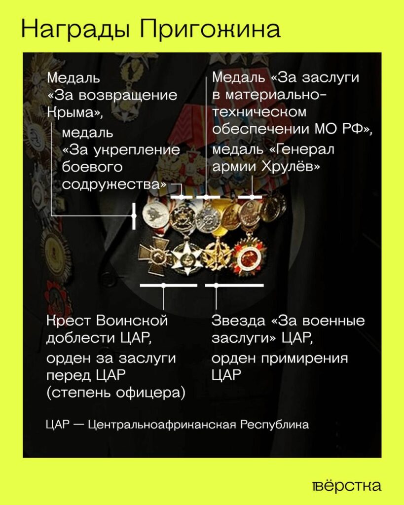 «Вёрстка» попыталась установить, чем награждён устроивший военный мятеж «повар Путина»