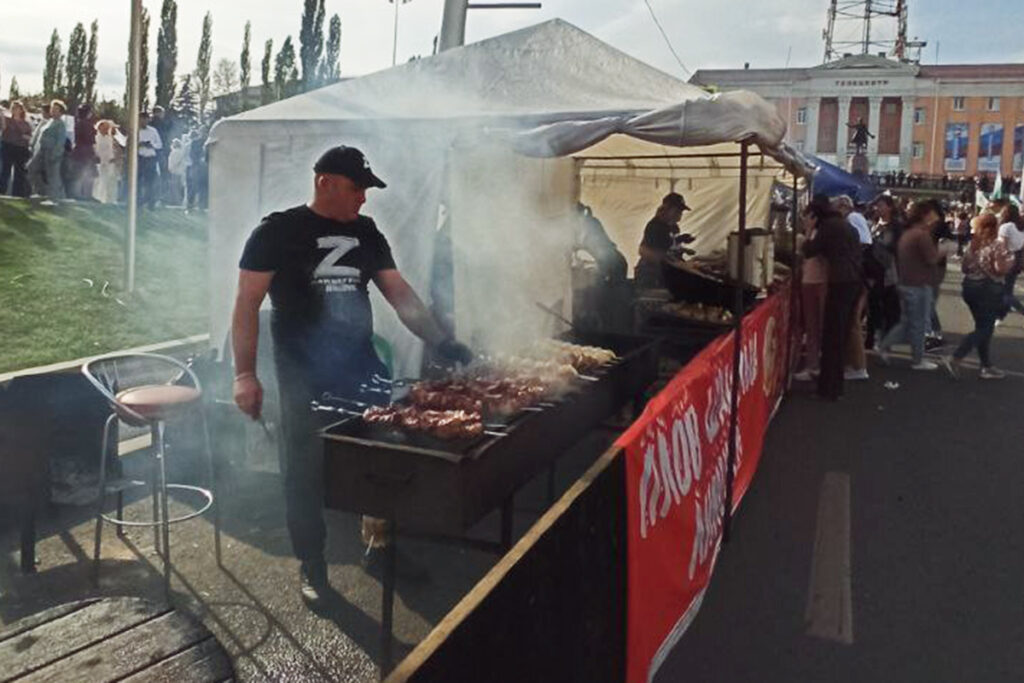 Пройдя досмотр, несколько десятков женщин и мужчин среднего возраста не пошли к сцене, а отправились покупать шашлык и сладости. Палатки с шашлыком по 200–300 рублей за порцию и леденцами на палочке поставили специально для участников концерта.