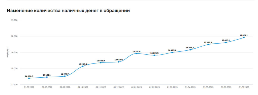Объём находящихся в обращении наличных денег в России к 1 июля достиг 17 триллионов 878,1 млрд рублей, следует из свежей статистики Центробанка, обратила внимание «Вёрстка». Это является очередным рекордом за всё время наблюдений.