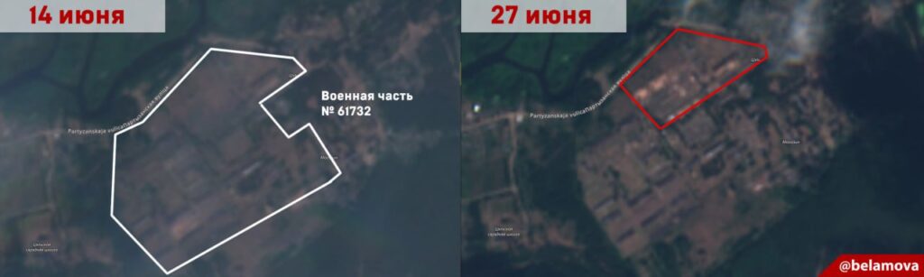 Снимки воинской части были сделаны 14 и 27 июня. На снимках от 14 числа следов какой-либо активности на территории базы не видно. Однако на изображениях за 27 июня уже чётко видно новые постройки.