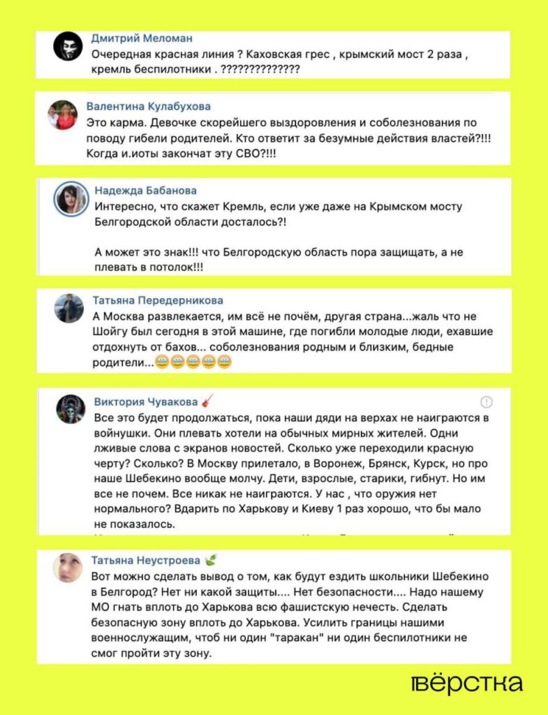Жители Белгородской области после взрыва на Крымском мосту просят власти «усилить границы» и интересуются, когда «дяди на верхах наиграются в войнушку» .
